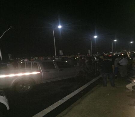 (公路工程處現(xiàn)場負責人在夜幕下正緊急調(diào)度人員、機械、車輛)