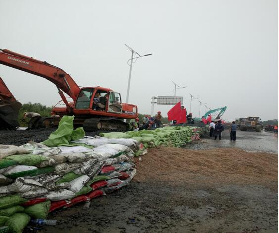 隨著參加搶險單位的陸續(xù)到達,在搶險一線指揮長統(tǒng)一調(diào)度下,安徽路達、中核西北集團和中鐵24局三家單位將共同協(xié)作完成總長約400米,高1.5米路段的修筑任務(wù),必須在洪水到來前完成。